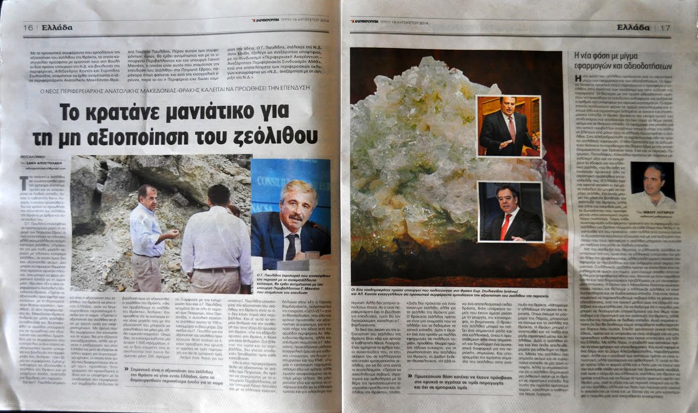 Το κρατάνε μανιάτικο για τη μη αξιοποίηση του ζεόλιθου. Ελευθεροτυπία 19/8/2014.